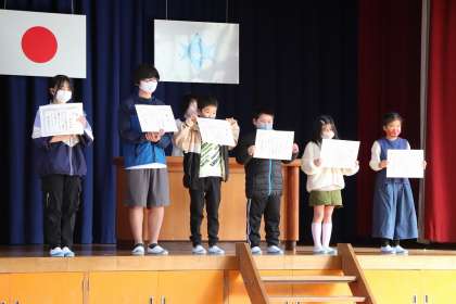 また、今日は、読書感想画で入賞した子たちの表彰がありました。校長先生から賞状をいただき、嬉しそうでした。