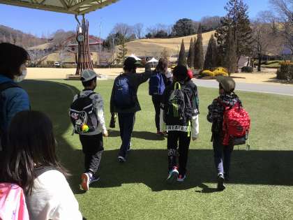 2月28日、今日はやまゆりさんが、平井小学校の特別支援学級のみんなと鞍ヶ池公園で交流遠足を行いました。