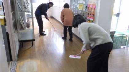 子どもたちが帰ったあとは、職員でワックスがけをしました。ピカピカの校舎から立派に巣立っていってほしいです。