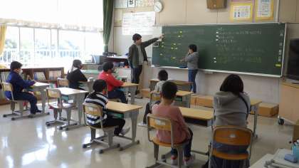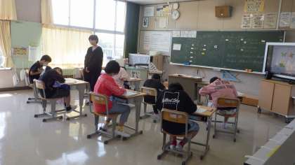 5年生は、係や級訓などをみんなで話し合って決めていました。6年生は今日から6年生らしく、算数の授業です。みんな真剣に形づくりに取り組んでいました。