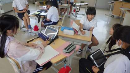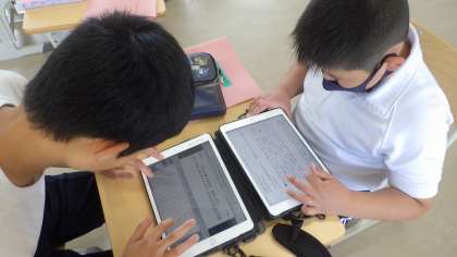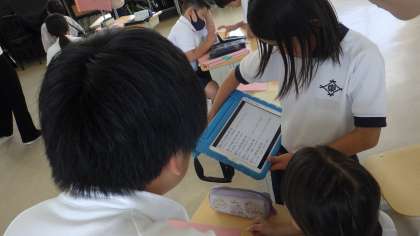今日は、第2回目の委員会がありました。5・6年生が3つの委員会に分かれ、学校のために仕事をしていました。保健委員会では、6月に行う学校保健委員会について、みんなで話し合い、発表することや、クイズなどをタブレットを使い、作っていました。インターネットで調べたり、発表ノートにクイズを打ち込んだりしながら、みんなで話し合っていました。今年度は歯についての発表をする予定です。楽しみです。