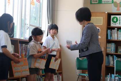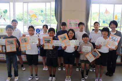 5月23日、全校で緑の会を行いました。今日は、4・5月生まれのお誕生日をお祝いしました。なかよし班の子からのメッセージと、校長先生からメッセージをもらいました。恥ずかしそうにしながらも、「算数をがんばりたいです!」「1年生の手本になれるようにがんばります!}などと、それぞれ頼もしい抱負を語ってくれました。全校の子から拍手をもらい、嬉しそうでした。