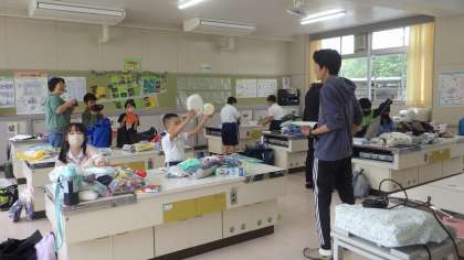 5月29日、いよいよ明日から1泊2日で、5年生が豊田市野外総合センターへ野外学習に出かけます。今日はあいにくの雨でしたが、家庭科室で、持ち物の事前確認を行いました。「お皿ありますか?」「ありまーす!」とみんなわくわくして持ち物確認をしていました。