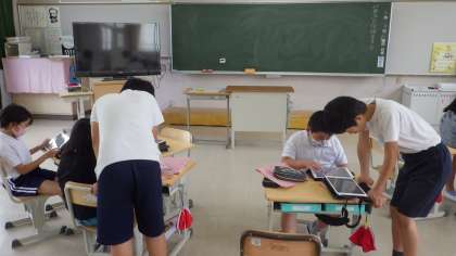 6時間目には委員会がありました。4・5・6年生が3つの委員会に分かれて、学校のために話し合いをしていました。保健委員会は、学校保健委員会に向けて着々と準備を進めていました。タブレットを使い、アンケートのグラフを作ったり、クイズを作ったりしていました。図書委員会は、図書館祭りに向けて、タブレットを使って、広報のおたよりを作っていました。どちらも、慣れた6年生が、困っている4・5年生に教え、助けながら活動をしていたのがさすが矢並っ子だなあと感じました。