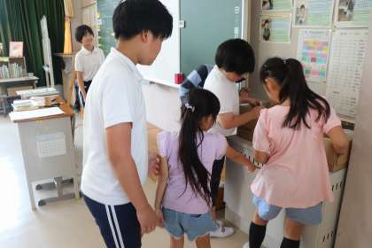 7月10日、緑の会で、7月の誕生日の子たちのお祝いをしました。なかよし班の子や校長先生からお祝いの言葉とプレゼントをもらいました。放課にはなかよし班遊びでした。残念ながら暑かったため、外では遊ぶことができませんでしたが、涼しい教室で、じゃんけん遊びや誕生日カード書き、宝探しなどをしました。なかよしの矢並っ子が、もっとなかよしになっていく時です。