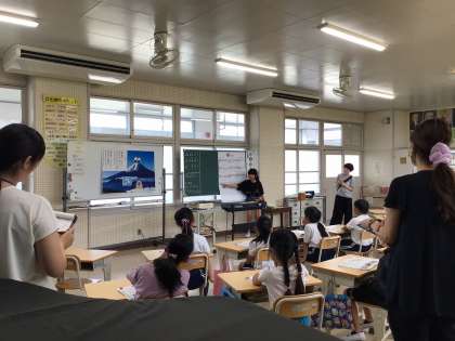 9月22日、3・4年生の音楽の授業をいろいろな学校の先生が見にみえました。「ふじさん」の歌を、工夫して歌う授業です。初め、恥ずかしがっていた子どもたちも、自分たちの歌っているところを学習用タブレットで撮ったり、どこを歌の山にすると富士山のよいところが伝わるか考えたりすることで、どんどん上手になりました。他の学校の先生方も感心してみえました。いつも一生懸命に取り組む矢並っ子たちのすてきな授業でした。