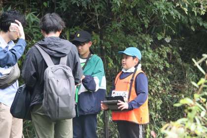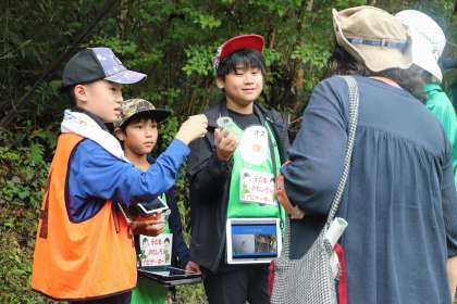 10月5日、矢並湿地の一般公開日に合わせて、5・6年生が子どもおもしろナビを行いました。自分たちが今まで総合的な学習の時間に調べてきた湿地の生き物について、公開日にみえた方を対象にナビゲーションをするというものです。