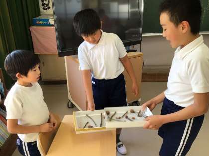 11月2日、1年生が5年生を招待し、秋祭りを行いました。これは、1年生が自分たちで秋のものを使って作ったおもちゃで、他の学年を招待し、遊んでもらうという企画です。今週と来週を使って、他の学年を楽しませています。今日は5年生が招待されました。やじろべえや、どんぐり車、迷路など、それぞれの工夫を凝らしたおもちゃがせいぞろい!5年生も楽しそうに遊んでいました。5年生の代表の子から、「やじろべえが特に楽しかったです。私たちのためにいろいろ用意してくれてありがとう!」と言われると、1年生はニコニコでした。