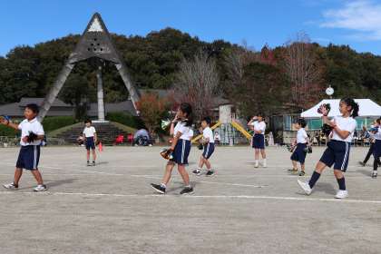 子どもたちは、1〜3年生がかわいらしく「ジャンボリーミッキー」と「あおきいろ」を踊り、4〜6年生がかっこよく「ソーラン」を披露しました。