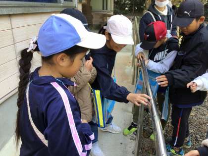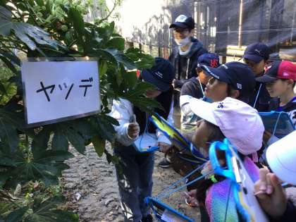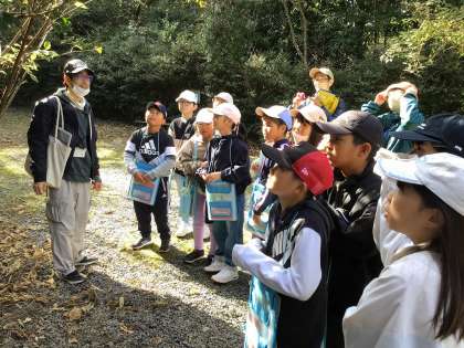 11月16日、3・4年生が、自然観察の森へ出かけました。5月の時と比べて、同じ木に変化があるか、前にいた生き物などはあるか、新しく出てきたものはあるかなど、みんなで探しながら、森の中を歩きました。「はっぱがなくなっちゃった!」「これははっぱはあるけど、色が違うよ。」「あっ、花が咲いてる!前はなかったよね!」など、たくさんの発見をして戻ってきました。