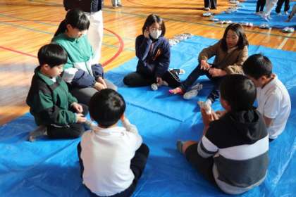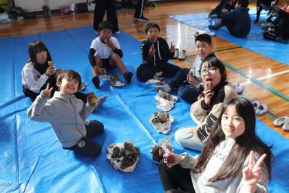 地域の方と、5,6年生が作ってくれた焼き芋が出来上がり、全校のみんなでおいしくいただきました。まだ、温かい芋をほおばり、みんなニコニコでした。