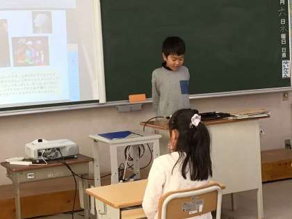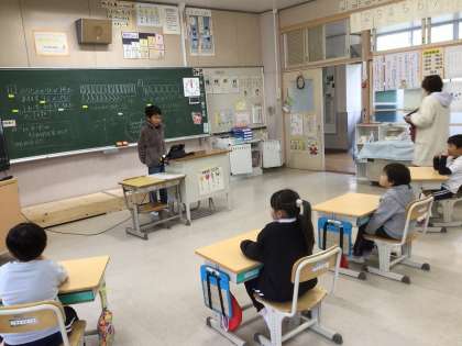 12月6日のさくらタイムの時間、やまゆりさんが、他の学級の子に「今年がんばったこと」の発表をしていました。これは、12日に高橋中学校での小中交流会で行われる発表の練習です。昨日は1年生、今日は2年生の前で発表をし、その後には、全員がよかったところを伝えていました。「運動会のソーランをがんばった」「矢並湿地学習のガイドをがんばった」など発表をすると、1、2年生から「相手の目をみながら言っていてすごいね。」「行きたくなりました。」など、いろいろな感想をもらい、ニコニコでした。