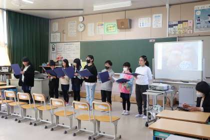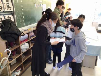 1月19日、2・3時間目に授業参観を行いました。1〜4年生は学習発表もありました。今まで調べてきたことでパワーポイントを作り、みんなの前で一人ずつ発表をしました。4年生は2分の1成人式として、お家の方にインタビューしたこと、将来の夢などをまとめ、発表しました。サプライズでお家の方からの手紙をもらい、みんなシーンとし、真剣に読んでいました。