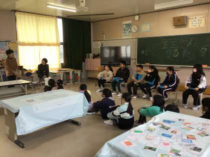 昨年度、学習をしてきて、3年生に教えた4年生からは、「ぼくたちが知らなかったことまであって、すごいなと思いました。」「カルタになっていて、楽しかったです。」などの感想が出ました。今までいろいろ教えてくださった講師の方からもほめていただき、嬉しそうな3年生でした。