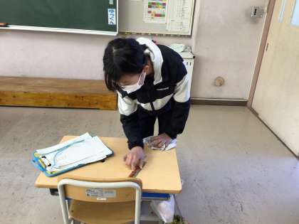 2月28日、卒業まで14日となりました。6年生は今週から「卒業プロジェクト」をやっていて、今日はその一環として、下学年の教室の掃除をしてくれました。いつもやりきれないような細かいところまで、休み時間を使って、一生懸命に行っていました。