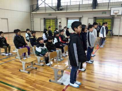 3月12日、卒業式の練習が昨日から始まっています。今日は、6年生と1〜5年生が分かれてそれぞれ練習をしました。