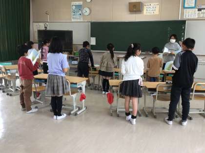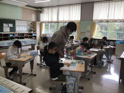 今年度から複式になった3・4年生は、国語の詩を3・4年生で組んで朗読していました。4年生がリードしながら、3年生もがんばっています。