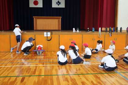 5月17日、全校で体力テストを行いました。50m走やボール投げ、立ち幅跳びなどをみんな一生懸命に行っていました。「去年よりのびたよ!」などの声が聞かれました。休み時間にも外遊びを奨励しています。体育時にもコーディネーショントレーニングなどを入れながら、体力を伸ばしていきます。