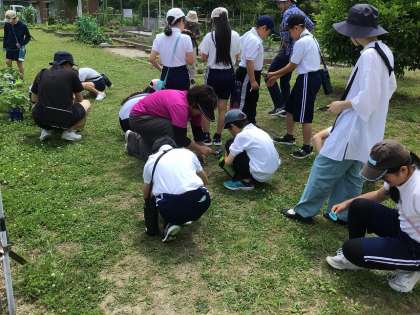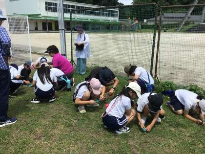 6月7日、5・6年生が講師をお招きし、自然観察力養成講座を行いました。自然の生き物についての観察の仕方などを、校庭に出て実際の植物を使って教えていただきました。なぜこの草は踏まれても強いのかを、虫眼鏡で観察したり、手で触って確かめたりし、みんなで観察の学習をしました。普段の授業や、矢並湿地観察会などでも生かしていければいいなと思います。