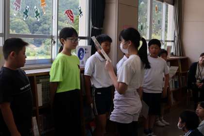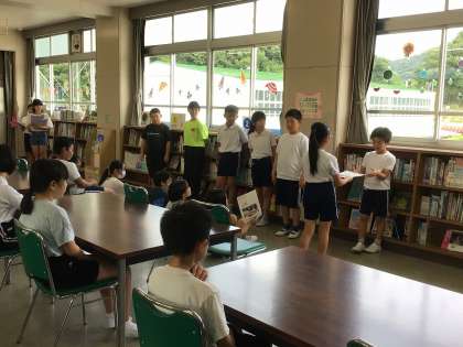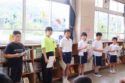 7月8日、緑の会で7月のお誕生日の子のお祝いをしました。「掃除を一生懸命にやっていていいね。」「低学年の子に優しくしていていいよ。」などとなかよし班の子からお祝いの言葉とみんなからのメッセージカードをもらいました。その後、一言ずつ頑張っていくことを話しました。「来年は中学生になるのでがんばりたい。」「下の子の見本になるように頑張りたい。」など、頼もしい言葉がたくさん聞かれました。みんな拍手でお祝いしました。