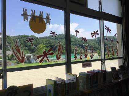 7月19日、夏休み前最後の日でしたが、図書館整備ボランティアさんが来てくださり、図書館の整備をしてくださいました。図書館整備ボランティアさんは、月に1回来てくださっています。この日は新しい本のブッカー掛けと、図書館の窓を9月の掲示にしてくださいました。子どもたちが9月に学校が始まった時にうれしくなるような、かわいらしい掲示です。いつも陰で学校のために動いてくださり、ありがとうございます。