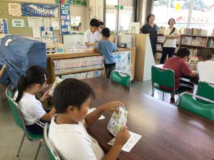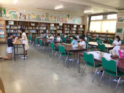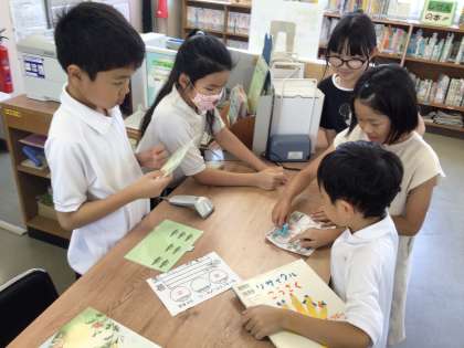 9月6日、昨日から図書館祭りをしています。図書委員会の子が企画し、今回は「わくわくスタンプラリー」を行っています。好きな本、1〜3分類の本など、スタンプカードに書かれている本を読んで、スタンプを図書委員会の子に押してもらいます。みんな真剣に本を読んでいました。いろいろな本に出あっていってほしいです。