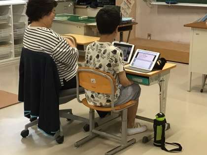3・4年生は複式学級ですが、算数はそれぞれの学年で行っています。今日の算数は、3年生はコンパスを使って、円をかく練習をしていました。「穴が外れた!」「うまくかけた!」と一生懸命にかいていました。4年生はみんなでどうやったら簡単に計算ができるのかを考えていました。姿勢週間もあり、みんなびしっと授業に臨んでいました。さすが4年生です。また、やまゆりさんでは、修学旅行に向けて、いろいろな建物を学習用タブレットで調べていました。