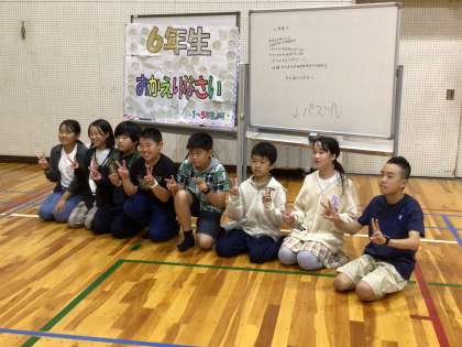 10月18日、6年生が修学旅行から帰ってきました。疲れた感じではありましたが、最後の到着式までしっかり行い、また一回り成長して帰ってきたのを感じました。体育館には、1〜5年生からのメッセージがあり、それを嬉しそうに見ていました。