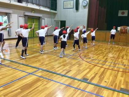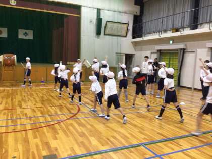 10月29日、あいにくの雨でしたが、運動会の開会式の練習を体育館で行いました。赤組と白組に分かれ、赤白誓いの言葉を、団長の掛け声で練習しました。赤組も白組もこぶしを突き出しながら、「あかー!」「しろー!」と大きな声で言い合いました。まだ運動会までは日にちがありますが、気合が入ってきています。