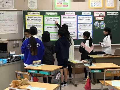 11月20日、子どもの権利擁護委員の方に来ていただき、5年生が子どもの権利条約について学習をしました。愛知県の中で豊田市が一番初めに作ったことや、子どもの権利条約は子どもと一緒に作ったことなどを聞き、権利の内容について教えていただきました。