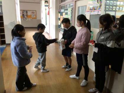 12月13日の朝の様子です。11日から今日まで、朝、委員会の子たちが中心となって、赤い羽根の募金を行いました。障がい者や高齢者など身近な人たちを助けることができるという、子どもたちの呼びかけに応え、たくさんの子が募金をしてくれ、3日間で7,793円の募金が集まりました。ご協力ありがとうございました。