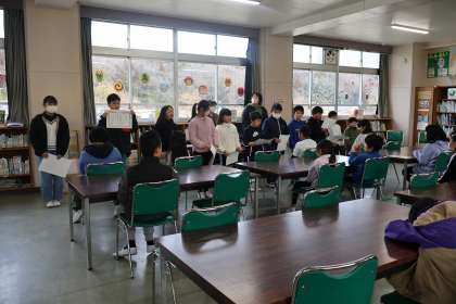 2月17日、緑の会で、2・3月生まれの子のお誕生日のお祝いをしました。なかよし班の子からは、「掃除をがんばっていていいね。」「友達に優しくしていていいね。」などと優しい言葉をもらっていました。また、誕生日の子からは、「理科を頑張りたいです。」や「中学校になるので、(遠いので)通学を頑張りたいです。」などと、次学年に向けての意気込みが感じられました。