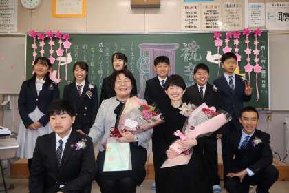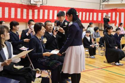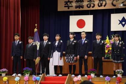 3月19日、珍しく小雪のちらつく中、令和6年度の卒業証書授与式を行いました。一人一人証書を受け取った後には、将来の夢を壇上から話しました。みんなとてもよい表情で、「保育士になりたいです」「パイロットになりたいです」など、そのためにこれからどうしていくのかまで、堂々と伝えました。全員が家族のような矢並っ子だからこその温かい卒業式でした。8人の卒業生全員、とても堂々とした態度で、立派に巣立っていきました。