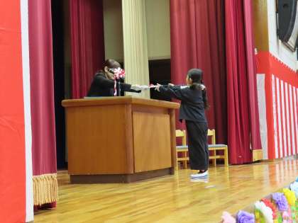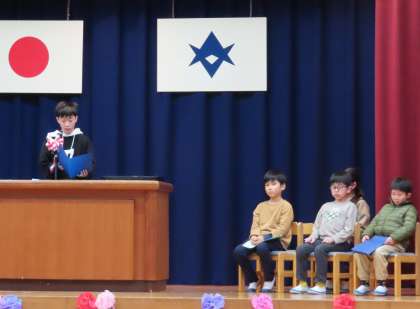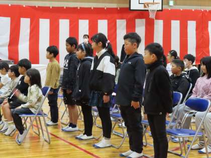 3月24日、今年度最後の登校日でした。令和6年度の修了式を行いました。初めに一人一人名前を呼ばれ、大きな返事をして立ち、代表の子が修了証を校長先生からいただきました。その後、それぞれの学年の代表の子が、今年度がんばったことと来年度がんばりたいことを発表しました。1年生の子は、「2年生になったら、1年生に優しくしたい」と話し、6年生の子は、「責任ある役割が増えるので、下級生のお手本になるようにがんばりたい」などと話してくれました。他の子たちもみんな次学年への意気込みが感じられ、頼もしいかぎりです。来年度も元気な矢並っ子でみんながんばってほしいと思います。