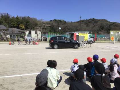 全校で交通安全教室を行いました。プロのスタントマンによる事故の再現を見て、交通安全について考えました。どのような時に、どのような事故が起きるのかを具体的見ることができ、振り返りでは、事故に合わないようにしたいと発言していました。