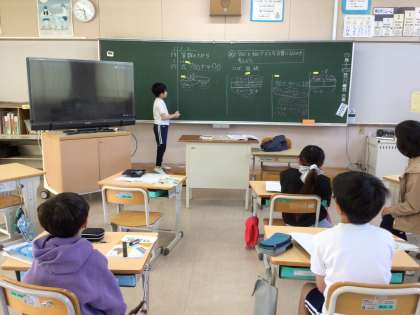 算数の授業開きをしました。あいさつの後、子どもたちはすぐにノートを開いて、算数を楽しみにしている様子でした。学習の進め方やノートの使い方を確認し、みんなでめあてを決めてから自分の考えを出し合いました。
