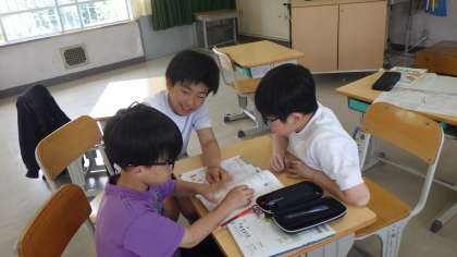 3年生が、計算の仕方のまとめを行っていました。よく分からないところは、先生に聞いたり、友達と相談したりしながら、理解を深めました。
