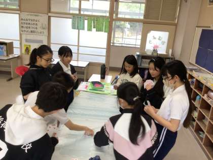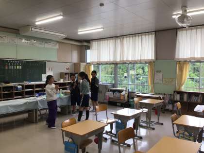 あいにくの雨ですが、6年生は全員で仲よくトランプをして遊んでいました。5年生は、手を使ったダンスを踊って過ごしていました。