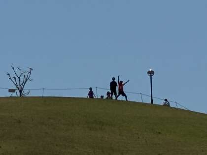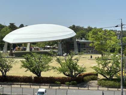 班ごとに記念撮影の後、午前中は園内を散策しています。若草山の上から「やっほー」と聞こえてきました。お昼はプレイハウスに集まってお弁当を食べます。