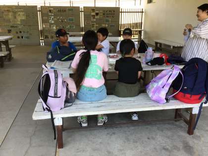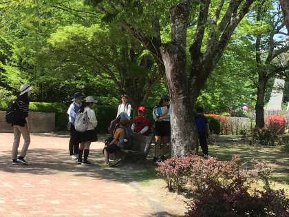 休憩してるところです。おやつを食べたり、木陰で休んだりしていました。
