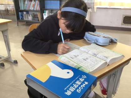 図書館司書の高橋さんと漢字辞典の使い方を学習しました。3通りの調べ方でいろいろな漢字の意味を調べることができました。自分の名前の漢字を調べている子もいました。楽しみながら辞書を引くことに慣れていけるといいですね。
