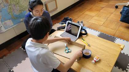 やまゆり学級では、学習用タブレットでスクラッチを使って、本に書いてあるプログラムを完成していました。本当に凄いスキルが身に付いていると感心しました。また、自分たちが遊べるものを工作していました。完成するのが楽しみですね。
