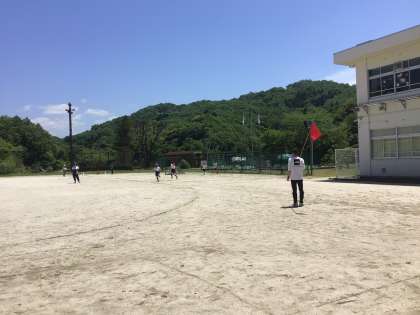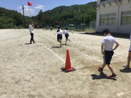 高学年の50メートル走、低学年のボール投げの様子です。