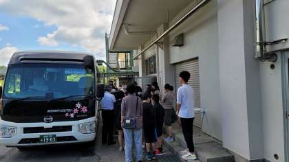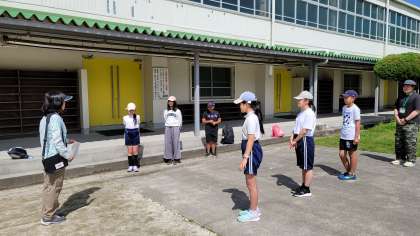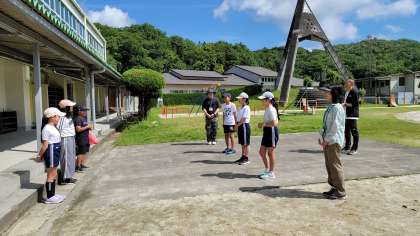 5年生が、出発式で、スローガン「カラフル協力キャンプ」を確認して、キャンプに出かけます。バスに乗ろうとしたときに他の学年のみんながサプライズでお見送りに来てくれました。とても温かい出発式になりました。