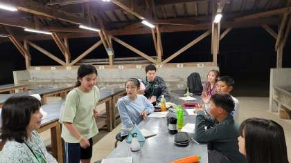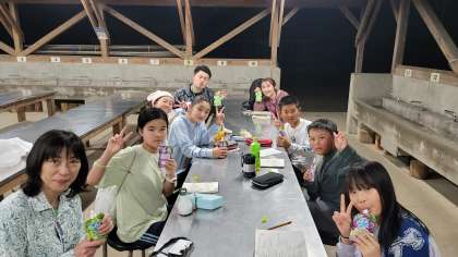 入浴の後に、夜のデザートを食べてから、今日の反省会を行いました。自分たちで振り返ったことを書き、紙を見ずに自分の言葉でみんなに伝えました。聴いている子たちも、話している子を見て、うんうんと反応しながら聴いていました。明日もいろいろな場面で、活躍する姿を楽しみにしています。