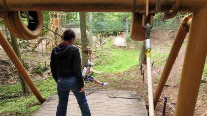 ターザンロープ、岩登り、つり橋、忍者ロープをやってみました。ターザンロープは、4回もチャレンジした子がいました。
