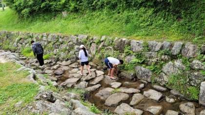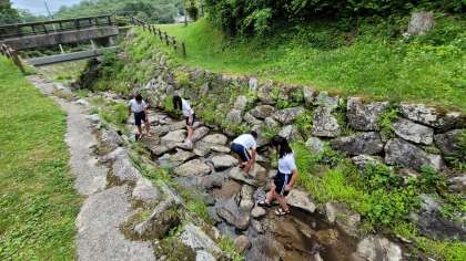 昼食を食べてから、沢遊びをしています。もう六所山のプログラムも終わりに近づいています。疲れていても、食事をとると、一気に元気になります。パワフルですね。