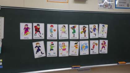 やまゆり学級では、外国語活動で、スポーツの英語での言い方をじゃんけんとカードを使ったゲーム形式で学んでいました。とっても盛り上がっていて、楽しそうに勉強していました。きっとよく覚えられたね。