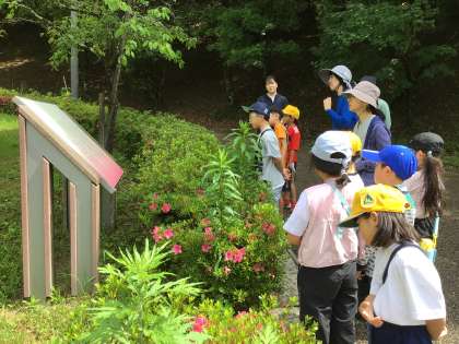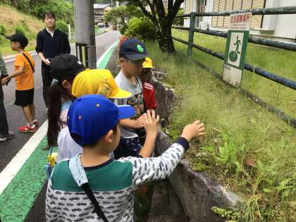 5月30日に、法沢四季の古里方面へ町探検に出かけました。「春見つけ」では、蝶々やだんごむし、紫陽花、黄色や白色やピンク色のお花などを見つけました。「すてき見つけ」では、まほろばのさとや、イノシシ注意の看板、カーブミラー、あじさいの道などを見つけました。またまた、さまざまなものを発見できましたね。すばらしいです。