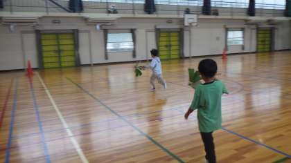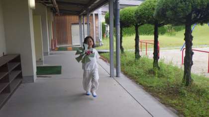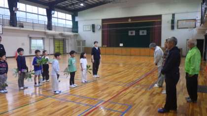 茎の中のやわらかいところを、竹串で抜いて、回るようにしました。最後は、完成した風車を持って、元気よく、体育館テラスや体育館の中を走り回っていました。本当に地域の皆様のおかげです。ありがとうございました。来年度は、天気の良い日に運動場で風を感じながら走れるように、雨天順延ができるのかよく検討しながら計画したいと思います。